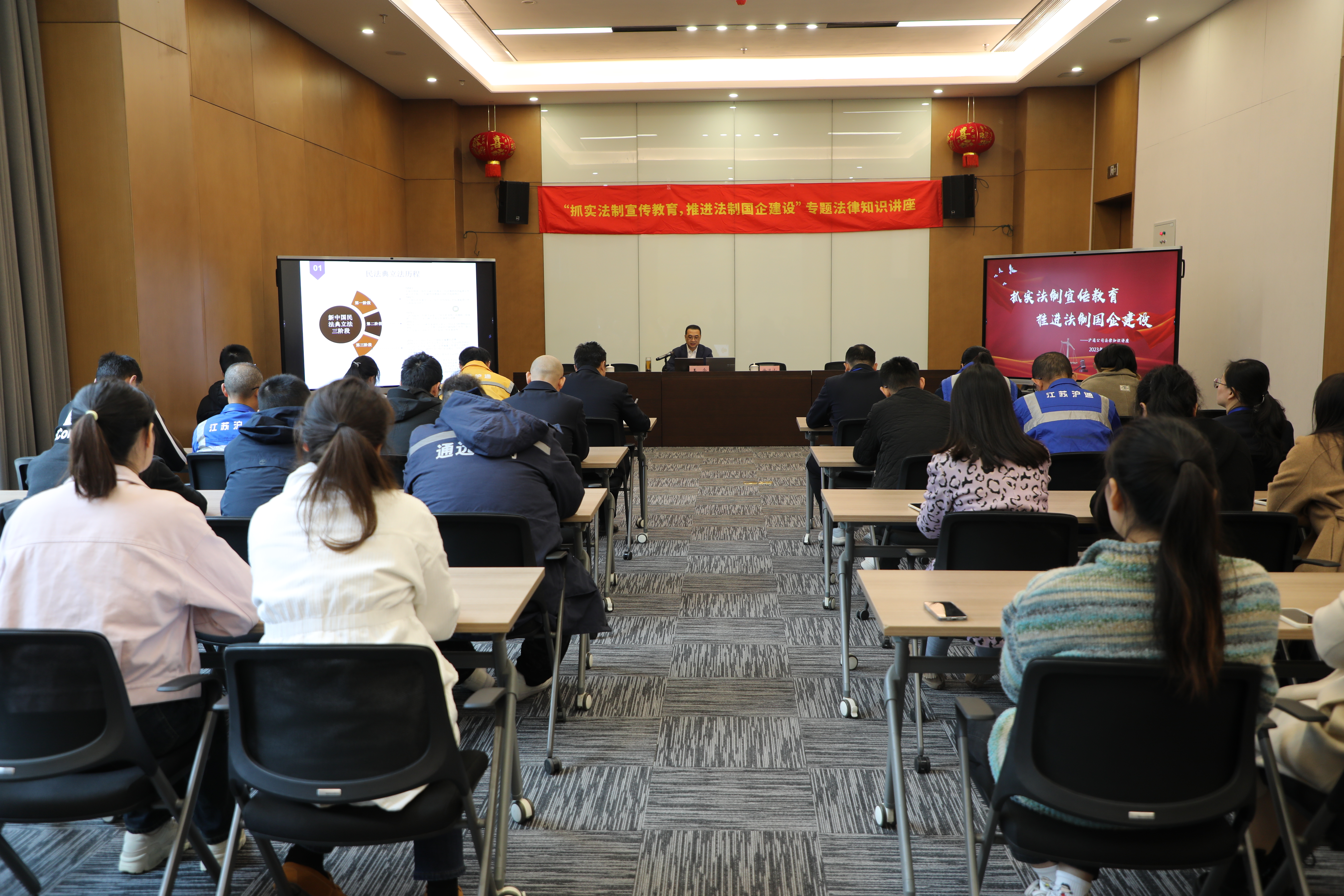 為深入學(xué)習(xí)貫徹習(xí)近平法治思想,推動(dòng)企業(yè)法治文化建設(shè)。11月16日上午,滬通公司組織開展“抓實(shí)法制宣傳教育,推進(jìn)法制國(guó)企建設(shè)”法律知識(shí)專題講座活動(dòng)。公司全體黨員、團(tuán)員青年、各部門職工代表等近40人參加活動(dòng)。 公司邀請(qǐng)北京大成律師事務(wù)所高級(jí)合伙人、...